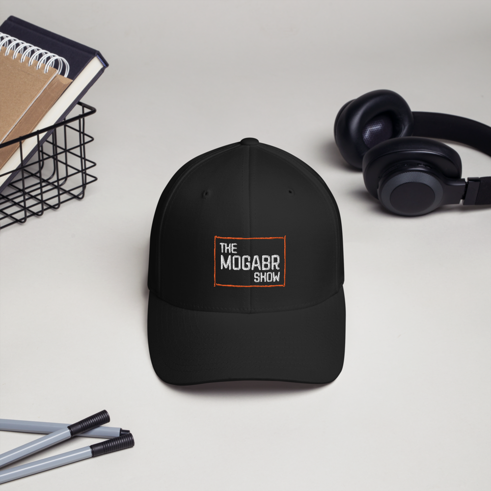 The Flexfit structured cap has a sturdy body, a curved visor, and a silver underside. It comes in two sizes and has an elastic band for maximum stretch and comfort.